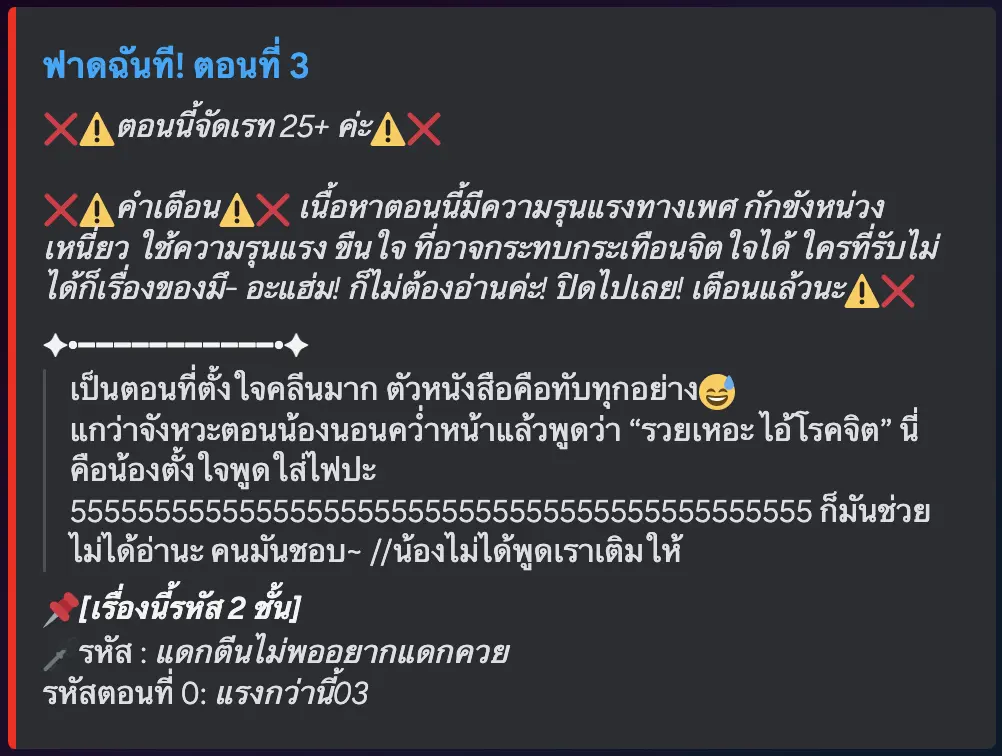 มีเนื้อหาหรือฉากที่อาจไม่เหมาะสมสำหรับผู้อ่านอายุน้อยจึงถูกบล็อคเพื่อความปลอดภัย
