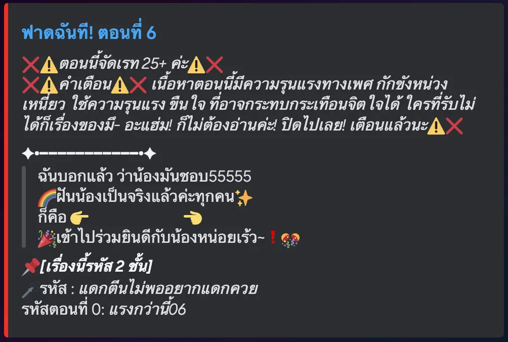 มีเนื้อหาหรือฉากที่อาจไม่เหมาะสมสำหรับผู้อ่านอายุน้อยจึงถูกบล็อคเพื่อความปลอดภัย