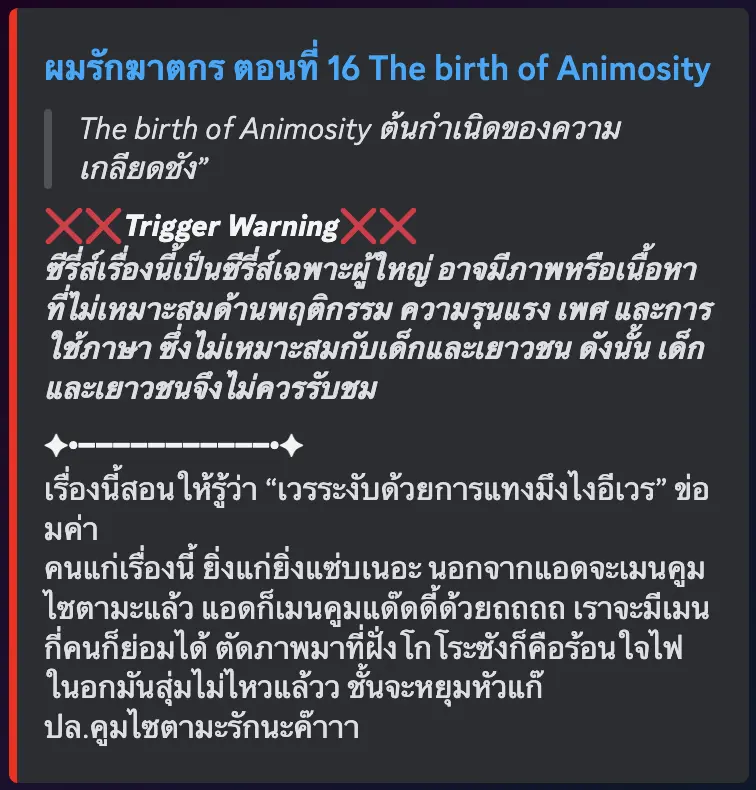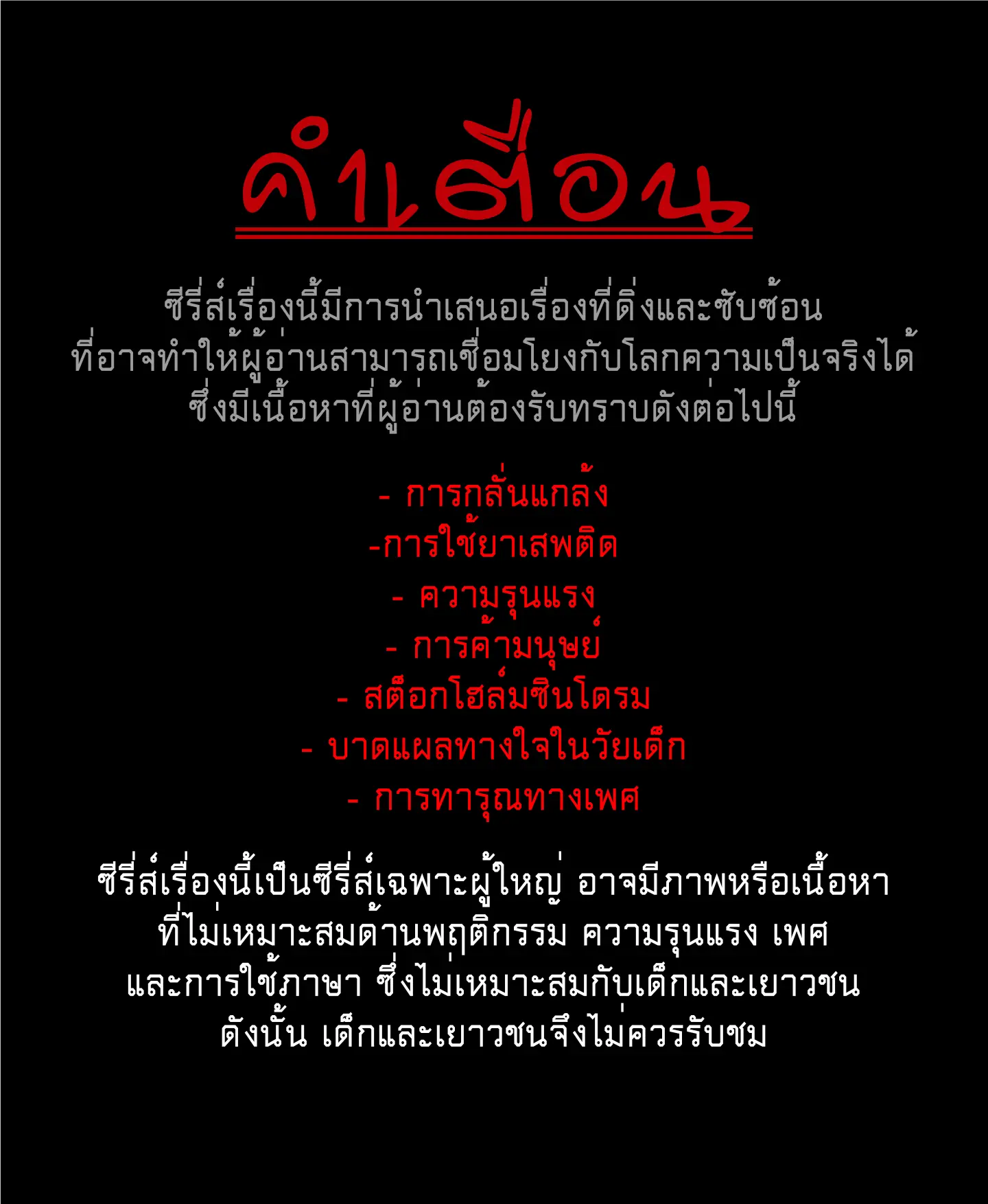 มีเนื้อหาหรือฉากที่อาจไม่เหมาะสมสำหรับผู้อ่านอายุน้อยจึงถูกบล็อคเพื่อความปลอดภัย